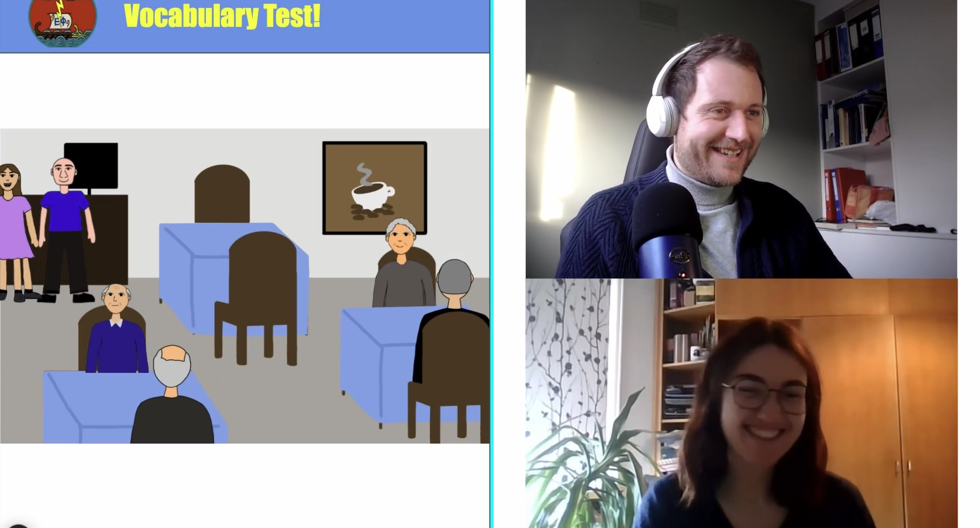 Niklas asks Aoife questions about the story and they retell it together in recorded speaking classes. Pause and try to answer the questions yourself.