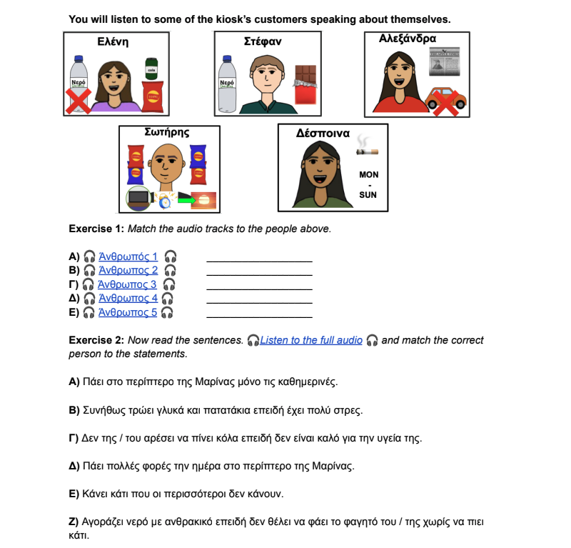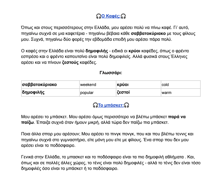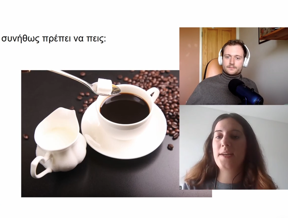 Video interviews with a Greek about Greek coffee culture. Includes supporting material to ensure understanding.